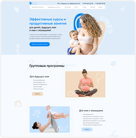 Многостраничный сайт. Курсы для детей и будущих мам.